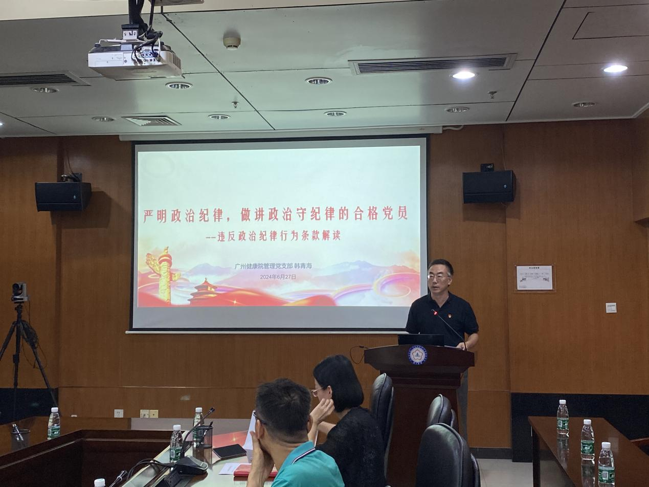 為深入學(xué)習(xí)貫徹習(xí)近平總書(shū)記關(guān)于黨紀(jì)學(xué)習(xí)教育的重要講話和重要指示精神,增強(qiáng)支部全體黨員及干部的紀(jì)律意識(shí),筑牢拒腐防變思想防線,6月27日,管理黨支部召開(kāi)黨員大會(huì)暨黨支部書(shū)記講紀(jì)律黨課報(bào)告會(huì)。