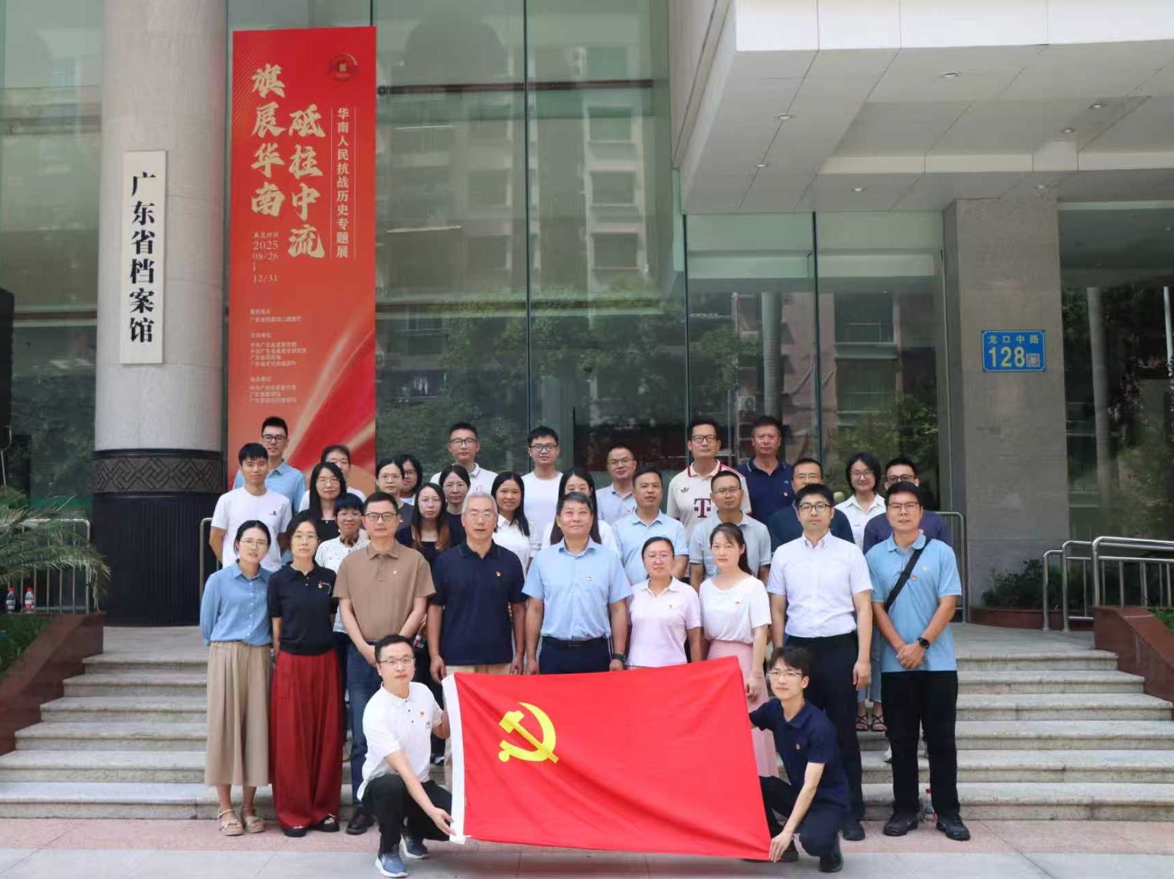 為紀(jì)念中國人民抗日戰(zhàn)爭暨世界反法西斯戰(zhàn)爭勝利80周年,鞏固黨史學(xué)習(xí)教育成果,弘揚(yáng)偉大抗戰(zhàn)精神,增強(qiáng)黨組織的凝聚力和戰(zhàn)斗力,8月29日,技術(shù)支撐支部與譜系設(shè)施建設(shè)支部聯(lián)合開展主題黨日,組織30余名黨員及入黨積極分子赴廣東省檔案館,參觀“旗展華南 砥柱中流——華南人民抗戰(zhàn)歷史專題展”,黨委書記張鴻翔以普通黨員身份參加。