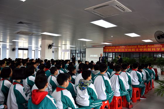 活動上,Rod Dunbar教授、廣州生物院李尹雄研究員、吳東海研究員等科學家分別作了《新西蘭教育與文化》、《我的科學故事》等主題講座。Rod告訴師生們,新西蘭的教育方式,更注重強調怎么讓小孩去“玩”,培養(yǎng)小孩的探索、創(chuàng)造力及創(chuàng)新能力。Rod還講到新西蘭的人文、土著毛利族,國鳥Kiwi(幾維鳥)、生態(tài)保護等方面,談到興致時,Rod歡快地唱起了歌。李尹雄研究員則通過自身做人做事的體會去引導學生如何樹立正確的人生觀和價值觀,并講述了自己在美國20年不改國籍的愛國故事。