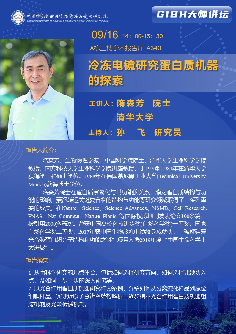 2025年9月16日大師講壇:冷凍電鏡研究蛋白質(zhì)機(jī)器的探索