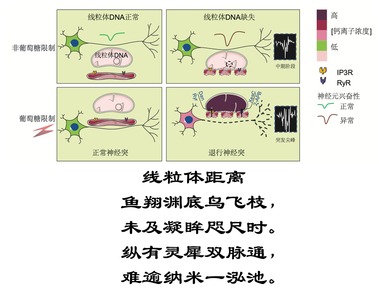 “世界上最遙遠(yuǎn)的距離,是飛鳥(niǎo)與魚的距離,一個(gè)翱翔天際,一個(gè)卻深潛海底”,世界上最遙遠(yuǎn)的距離不是飛鳥(niǎo)與魚的距離,是線粒體與內(nèi)質(zhì)網(wǎng)的距離。正是“魚翔淵底鳥(niǎo)飛枝,未及凝眸咫尺時(shí)”!內(nèi)質(zhì)網(wǎng)-線粒體接觸的距離20nm,通過(guò)兩個(gè)通道RyR、IP3R把鈣離子從內(nèi)質(zhì)網(wǎng)傳給線粒體,調(diào)控能量的產(chǎn)生;而接觸距離的異??s短,使鈣轉(zhuǎn)運(yùn)失控過(guò)載驅(qū)動(dòng)神經(jīng)元退行,正是“縱有靈犀雙脈通,難逾納米一泓池”。 世界上最遠(yuǎn)的距離,是這樣向死而生的情非得已。