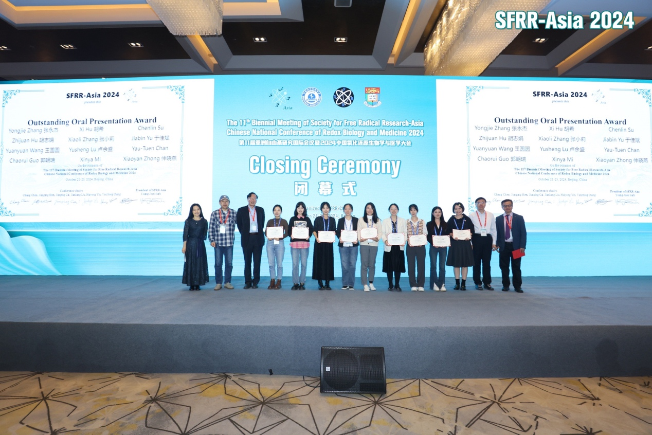 10月21日,第十一屆亞洲自由基研究國際會議暨2024中國氧化還原生物學(xué)與醫(yī)學(xué)大會在北京召開,此次大會頒發(fā)了“SFRR-Asia 亞洲青年研究員獎(SFRR Asia Young Investigator Award,YIA)”以及“優(yōu)秀口頭報(bào)告獎(Outstanding Oral Presentation Award)”等獎項(xiàng)。