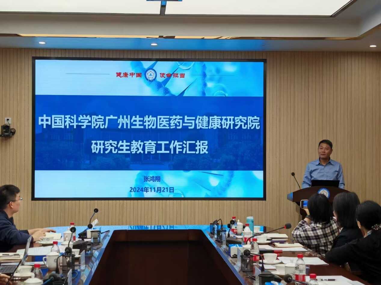 11月21日,中國科學(xué)院大學(xué)黨委常委、副校長金德鵬一行到廣州健康院調(diào)研研究生教育工作,校學(xué)生處處長王崗、校團委書記陳睿、校學(xué)生工作部副部長王潔婷、校畢業(yè)生就業(yè)指導(dǎo)中心主任常宏武,以及中國科學(xué)院廣州分院人事人才處業(yè)務(wù)主管張正雍等陪同調(diào)研。健康院黨委書記、副院長張鴻翔和黨委副書記、紀(jì)委書記徐海熱情接待了金德鵬副校長一行。人事教育處、黨群工作處等部門負責(zé)人和研究生部、團委的相關(guān)工作人員參加調(diào)研座談會。