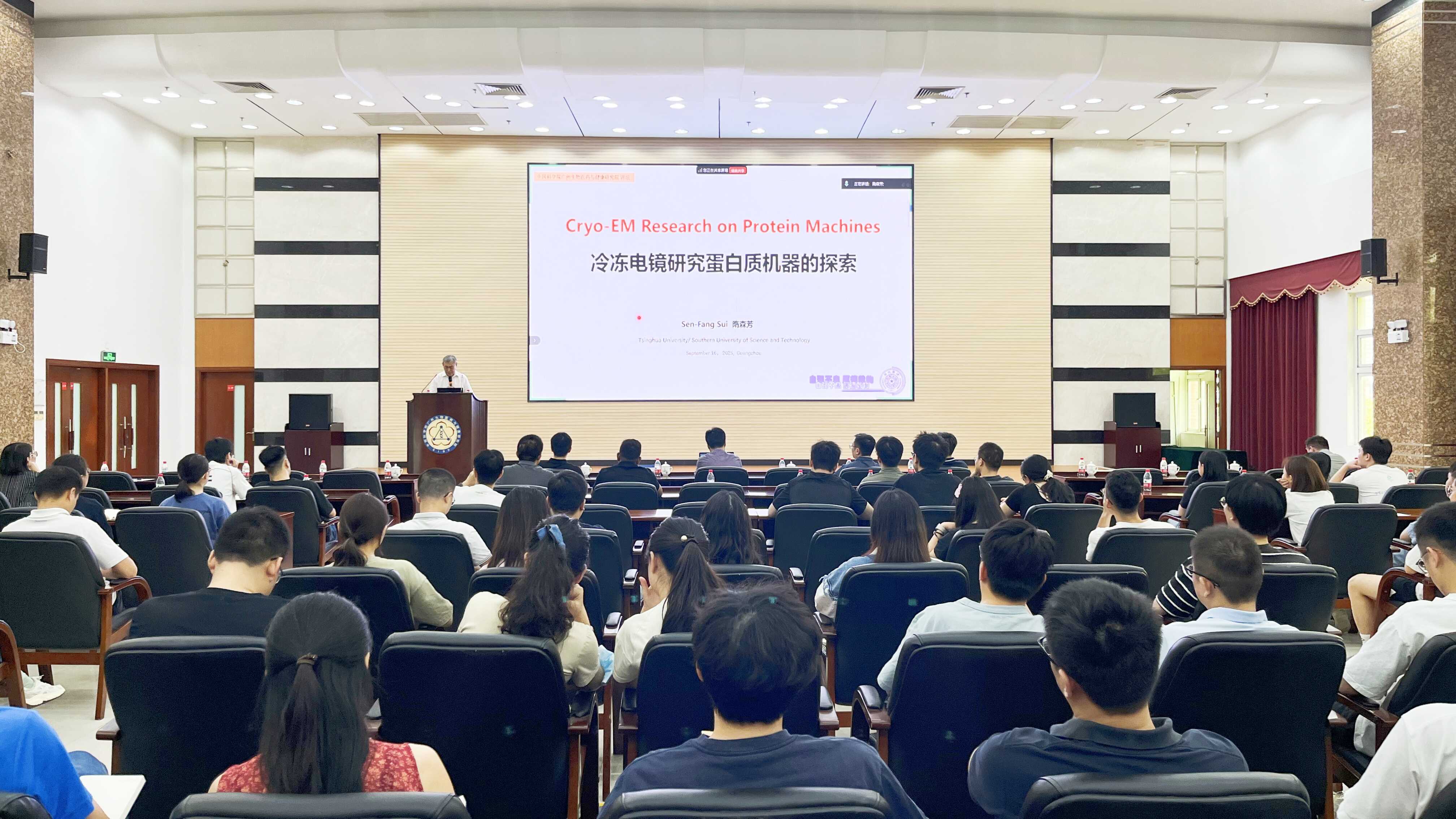 隋森芳院士以《冷凍電鏡研究蛋白質(zhì)機(jī)器的探索》為題作報(bào)告。他結(jié)合自身數(shù)十年科研經(jīng)歷,分享了幾點(diǎn)科研體會(huì):選擇處于上升階段的學(xué)科、找準(zhǔn)合適切入點(diǎn)并秉持堅(jiān)持不懈的精神,為科研筑牢根基;持續(xù)跟進(jìn)前沿,動(dòng)態(tài)更新課題方向,助力在領(lǐng)域內(nèi)實(shí)現(xiàn)突破。報(bào)告中,隋院士還系統(tǒng)解讀冷凍電鏡技術(shù)的核心價(jià)值,重點(diǎn)介紹單顆粒技術(shù)與冷凍電子斷層成像技術(shù)兩大核心技術(shù),詳解其團(tuán)隊(duì)創(chuàng)新性融合兩種技術(shù),成功實(shí)現(xiàn)細(xì)胞切片中原位蛋白近原子分辨率解析,破解傳統(tǒng)技術(shù)“純化結(jié)構(gòu)”與“原位功能”割裂問(wèn)題的研究過(guò)程。同時(shí),分享團(tuán)隊(duì)在光合作用系統(tǒng)研究中的系列成果,尤其在“藻單體”研究中,借助冷凍電鏡揭示能量傳遞機(jī)制,發(fā)現(xiàn)骨架蛋白空間結(jié)構(gòu)與色素分子微環(huán)境對(duì)能量傳遞方向的關(guān)鍵調(diào)控作用,為理解光合作用高效能量轉(zhuǎn)化原理提供直接結(jié)構(gòu)證據(jù)。報(bào)告結(jié)束后,與會(huì)人員還圍繞科研方向選擇、冷凍電鏡樣品制備、學(xué)生培養(yǎng)等展開(kāi)交流。