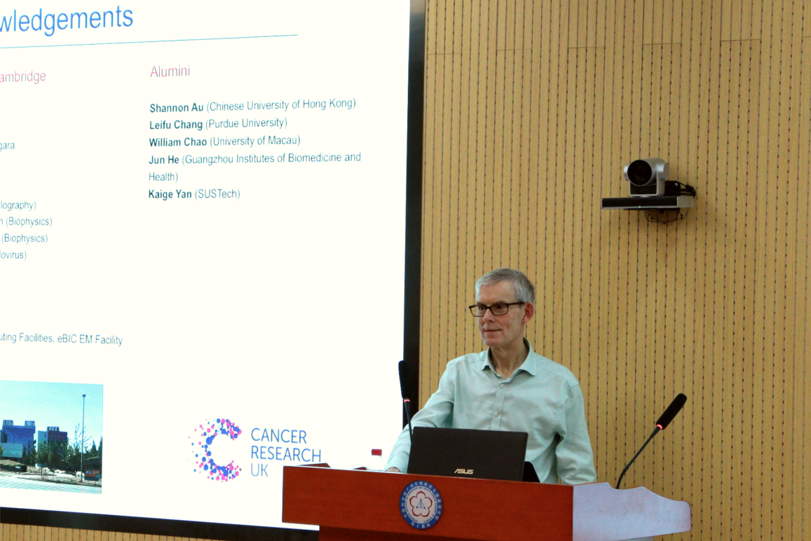 在本次報告中,David Barford院士從細(xì)胞有絲分裂的核心事件——染色體的精確分離這一基本科學(xué)問題切入,系統(tǒng)闡述了其團(tuán)隊如何通過高分辨率結(jié)構(gòu)生物學(xué)方法,揭示著絲粒的組裝和工作機(jī)理,其結(jié)構(gòu)洞察為理解細(xì)胞分裂的保真度提供了原子層面的基礎(chǔ)。此外,Dr.Barford還分享了他正在進(jìn)行的最新研究,利用前沿的原位冷凍電鏡技術(shù),觀測著絲粒在細(xì)胞內(nèi)部真實的動態(tài)組裝機(jī)制。