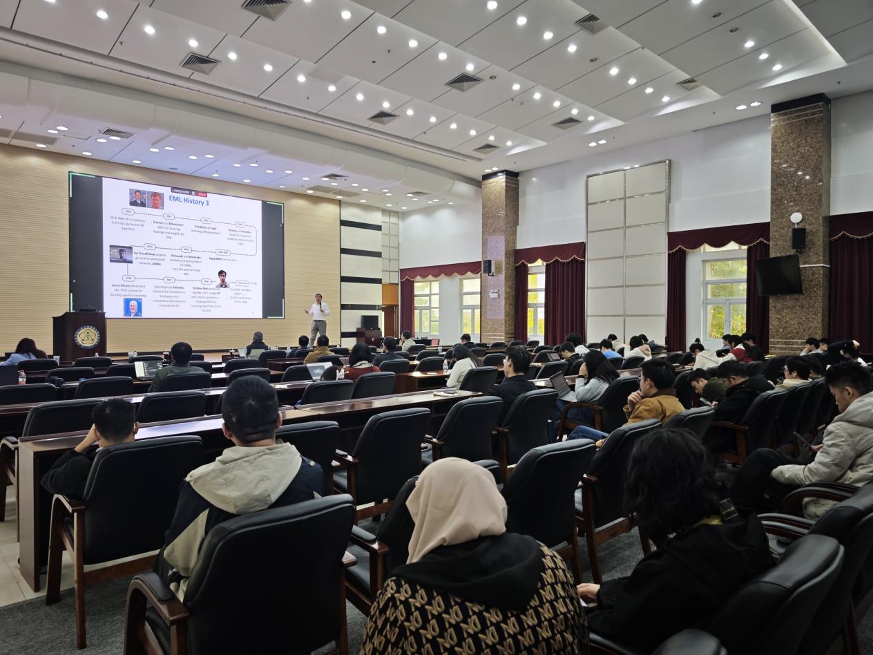 張院士以《Evolutionary Machine Learning: 70 Years of Progress》為題做報告,他以時間為主線,系統(tǒng)梳理了進化機器學習從1950年代圖靈提出模式識別理念至今70年的發(fā)展脈絡,清晰呈現(xiàn)了從規(guī)則邏輯、樹基模型到神經(jīng)網(wǎng)絡融合的三大關鍵階段,詳解了GP(基因編程)系列模型迭代及進化計算與深度學習的融合突破。張院士結合團隊研究成果,重點介紹了人工智能技術在計算機視覺、醫(yī)療微小病灶檢測、新冠醫(yī)療資源調度、華為供應鏈優(yōu)化等領域的跨界應用,同時客觀分析了當前理論深度不足、計算量較大、泛化能力待提升等挑戰(zhàn)。他強調,未來技術發(fā)展應聚焦“真實世界影響”,以解決實際問題為導向,在經(jīng)濟效益、環(huán)境效益與人類健康領域實現(xiàn)更大貢獻。