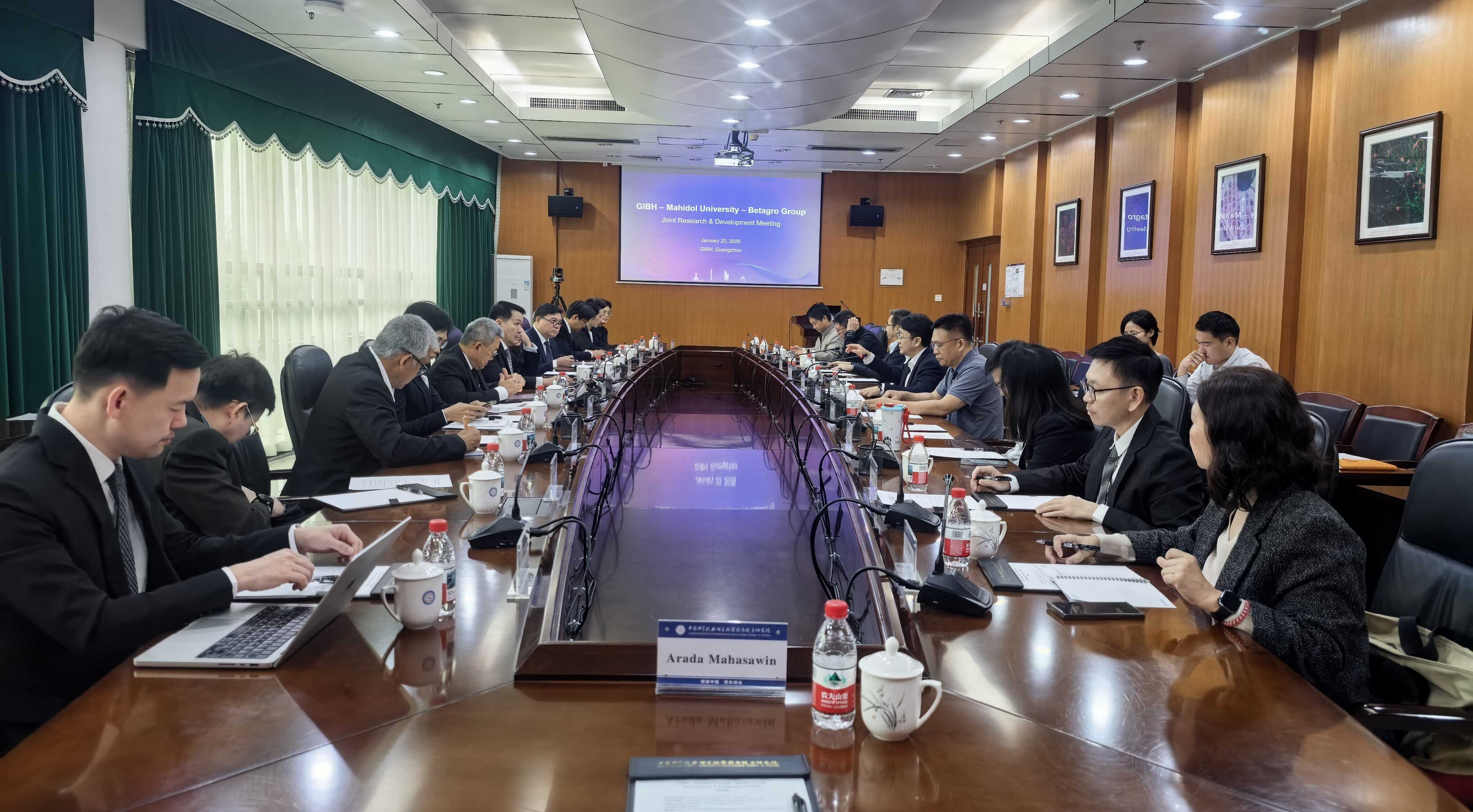 1月20日,泰國瑪希隆大學(xué)校長Piyamitr Sritara教授與 Betagro集團(tuán)首席執(zhí)行官Vasit Taepaisitphongse 率代表團(tuán)訪問中國科學(xué)院廣州生物醫(yī)藥與健康研究院(以下簡稱 “廣州健康院”),雙方圍繞異種移植、細(xì)胞治療等前沿領(lǐng)域的科研合作與人才聯(lián)合培養(yǎng)深入洽談,達(dá)成多項共識。