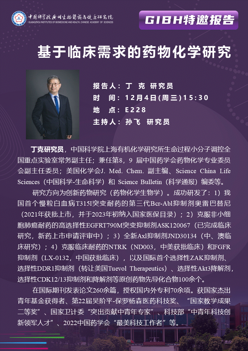 2024年12月4日特邀報(bào)告:基于臨床需求的藥物化學(xué)研究