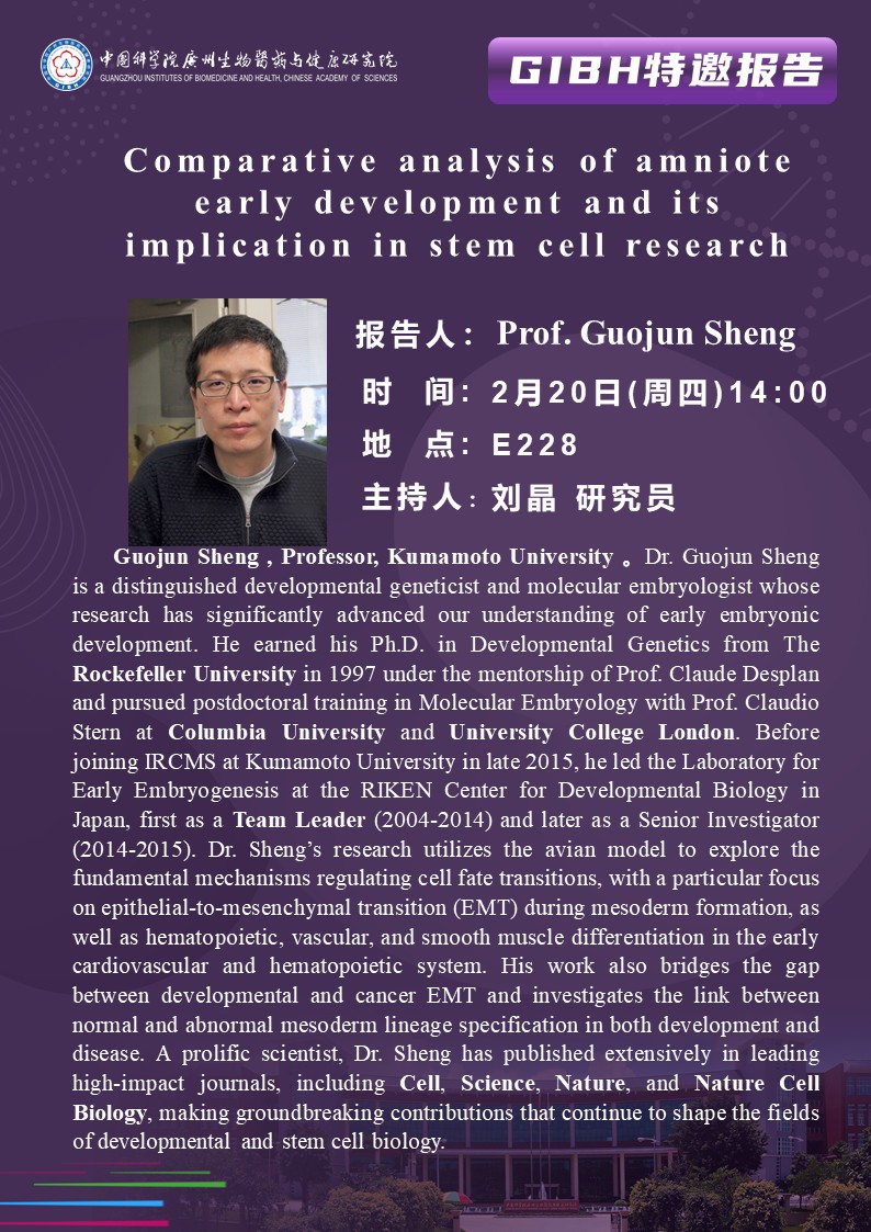 2025年2月20日特邀報(bào)告:Comparative analysis of amniote early development and its implication in stem cell research