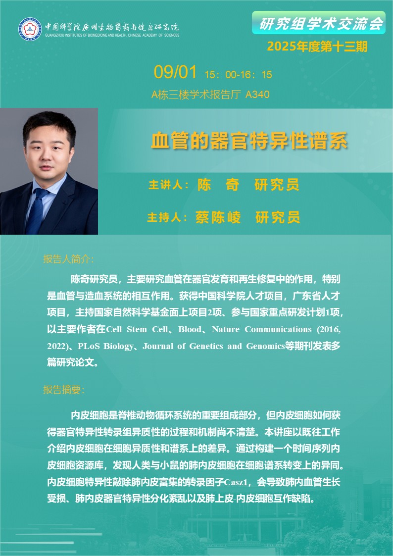 2025年9月1日研究組學術交流會(2025年度第十三期):血管的器官特異性譜系
