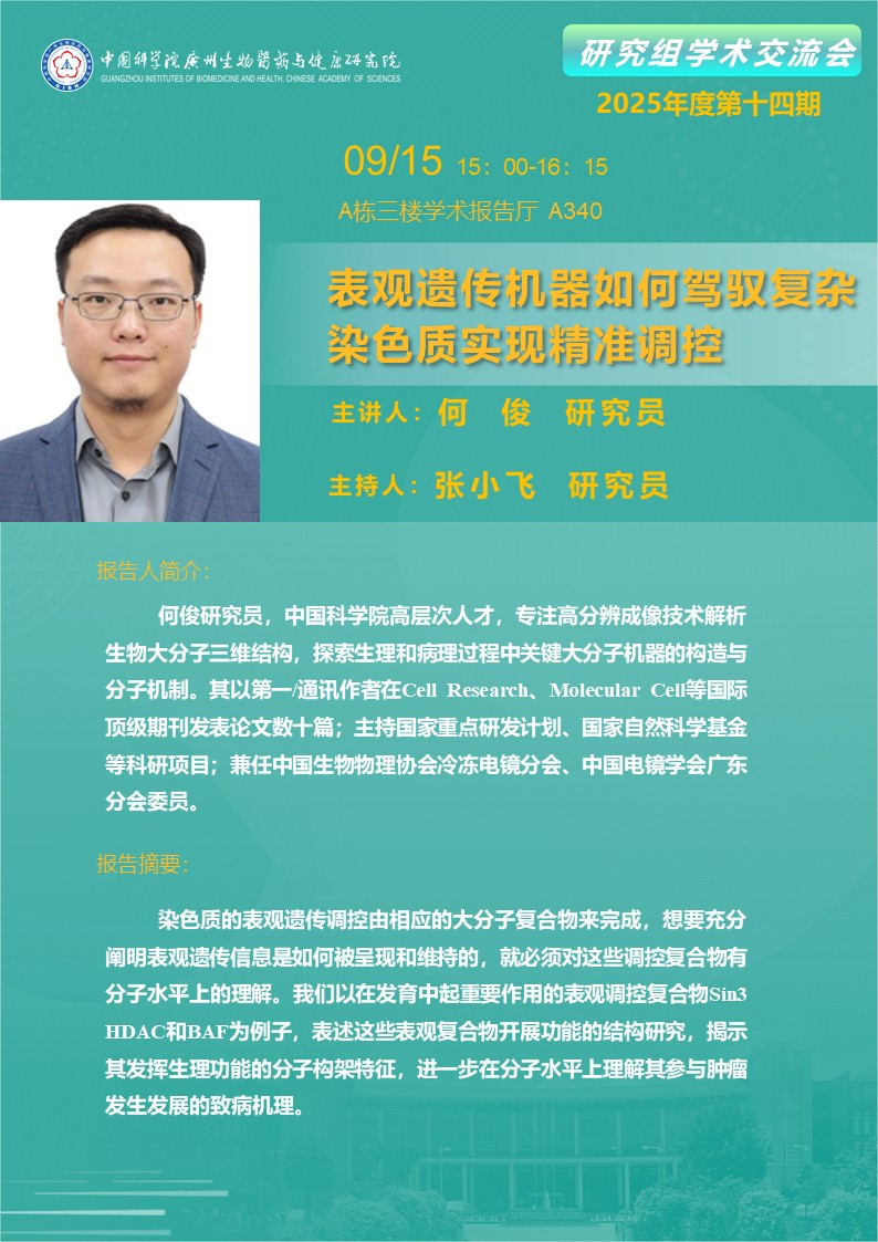 2025年9月15日研究組學(xué)術(shù)交流會(huì)(2025年度第十四期):表觀遺傳機(jī)器如何駕馭復(fù)雜染色質(zhì)實(shí)現(xiàn)精準(zhǔn)調(diào)控