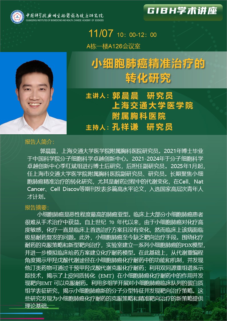 2025年11月7日學術講座:小細胞肺癌精準治療的轉化研究