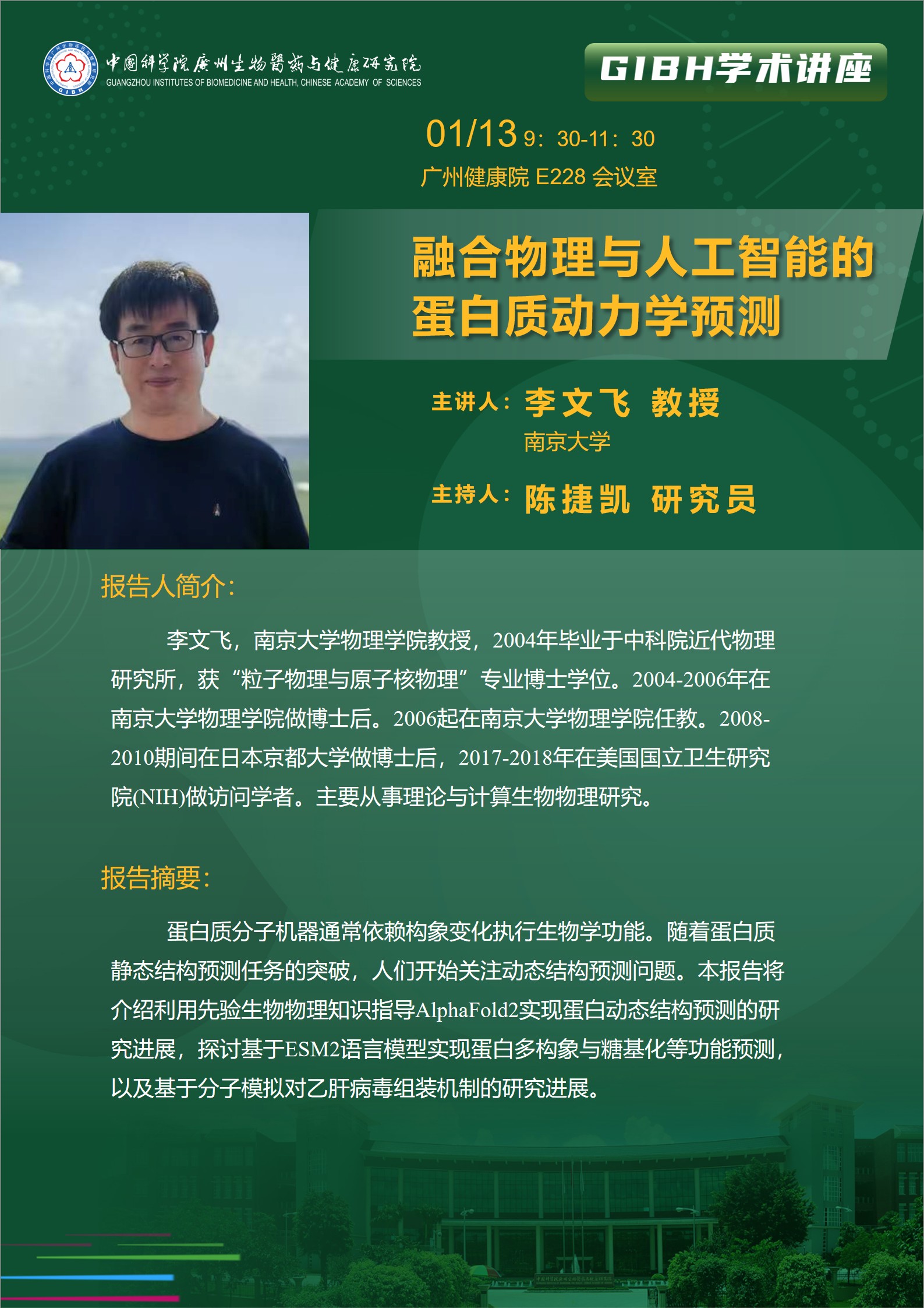 2026年1月13日學(xué)術(shù)講座:融合物理與人工智能的蛋白質(zhì)動力學(xué)預(yù)測