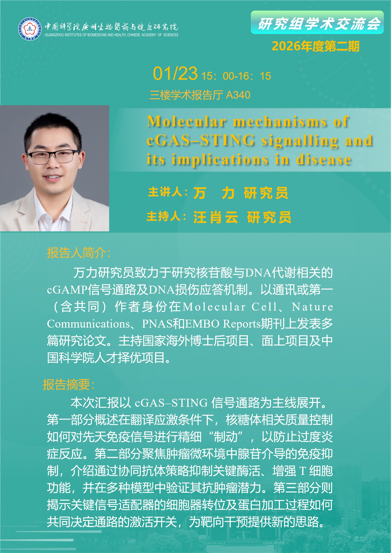 2026年1月23日研究組學術交流會(2026年度第二期):Molecular mechanisms of cGAS–STING signalling and its implications in disease