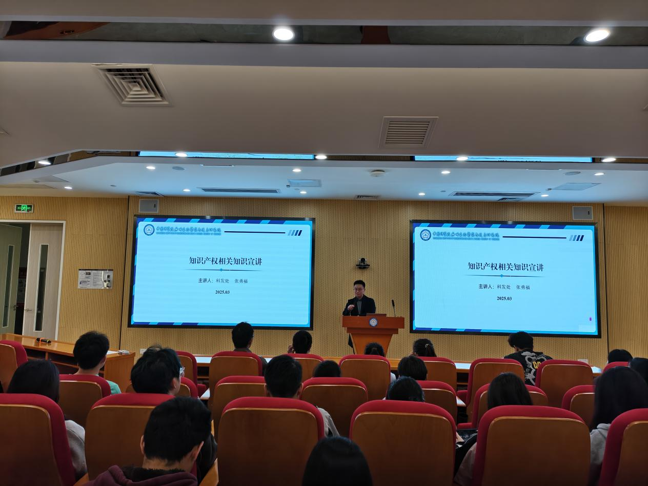 廣州健康院科技發(fā)展處張勇福通過理論講授、案例剖析相結合的形式,圍繞“知識產權的定義、重要性與分類”“知識產權與科研”以及“知識產權相關法律政策”等模塊進行系統(tǒng)講解。同時,他引入“專利技術糾紛”“學術論文版權侵權”等代表性案例,深入剖析要點,強調同學們要樹立知識產權保護意識,既要珍視創(chuàng)新成果、做好產權維護,又要嚴守學術規(guī)范、避開潛在“雷區(qū)”。
