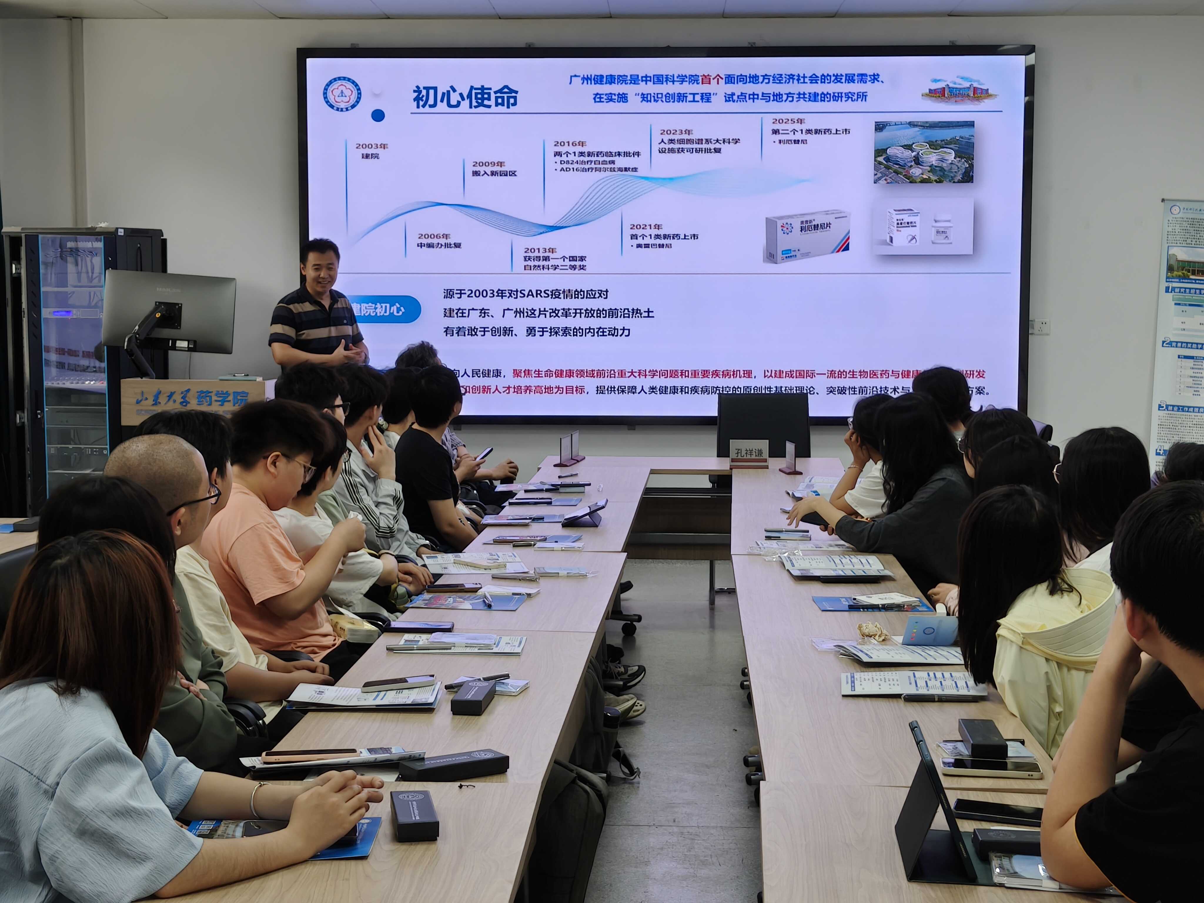 5月13日,廣州健康院在山東大學(xué)成功舉辦研究生招生宣講會。醫(yī)藥創(chuàng)新研究所研究員、博士生導(dǎo)師孔祥謙率隊開展宣講活動,向在場師生系統(tǒng)介紹了廣州健康院在生物醫(yī)藥領(lǐng)域的前沿探索與人才培養(yǎng)體系。